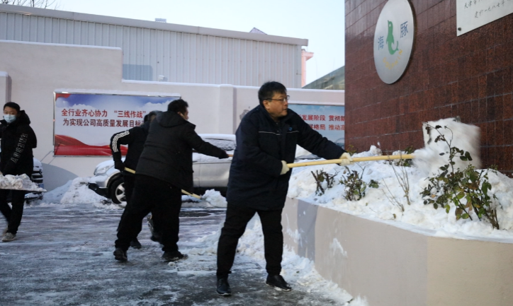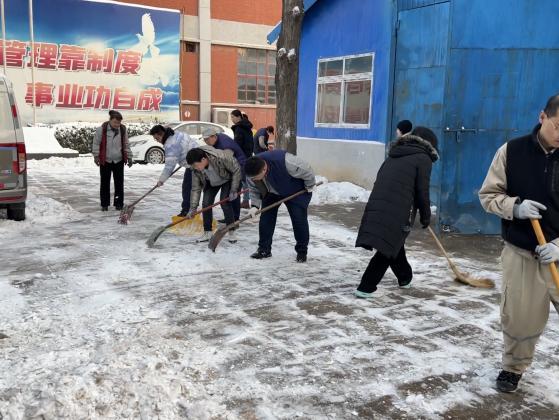 高度重視快部署,迅速響應重落實。晨光熹微,寒風陣陣,公司黨委書記、董事長楊永勝,黨委副書記、總經(jīng)理郭秀萍及公司領導班子成員,天還未亮就早早到達公司,帶領黨員干部開展掃雪工作,寒風刺骨也沒有阻擋公司員工除冰掃雪的熱情,冰雪天里,一個個忙碌的身影彰顯著責任、奉獻和擔當。大家充分發(fā)揚不怕苦、不怕累的精神,不懼風雪、不畏嚴寒,揮舞鐵鍬、密切配合,齊力清除院內(nèi)道路厚重的積雪和結冰。忙碌的身影在皚皚白雪中形成一道亮麗的風景線,在大家的共同努力下,公司院內(nèi)積雪得到有效清理,大家用實際行動為守護職工群眾安全。