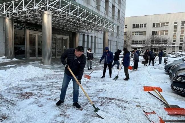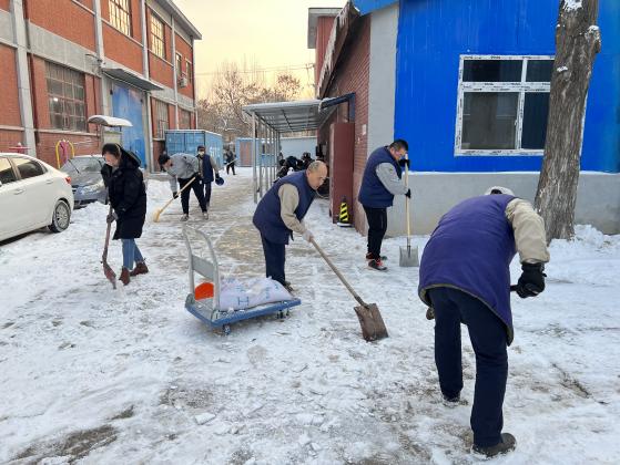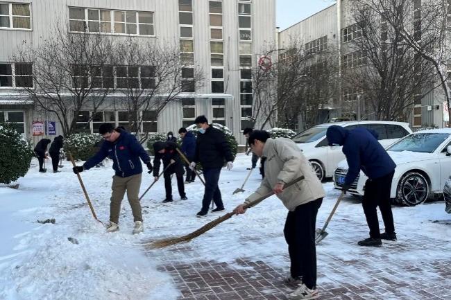 行業(yè)職工齊上陣,積極作為保生產(chǎn)。公司所屬雙安公司、七二九公司和橡研所公司也積極響應,快速行動,體現(xiàn)行業(yè)上下一盤棋,各單位領導帶隊,動員黨員干部和青年職工積極開展鏟雪除冰行動,大家齊心協(xié)力,配合默契,對本單位出入口、院內(nèi)道路、停車場等積雪較厚的區(qū)域進行清掃,保障了廠區(qū)內(nèi)各條道路的暢通。同時及時啟動應急預案,加強對廠區(qū)內(nèi)各個點位的巡查力度,做好人員的調(diào)配部署,切實保障生產(chǎn)經(jīng)營活動安全有序開展。