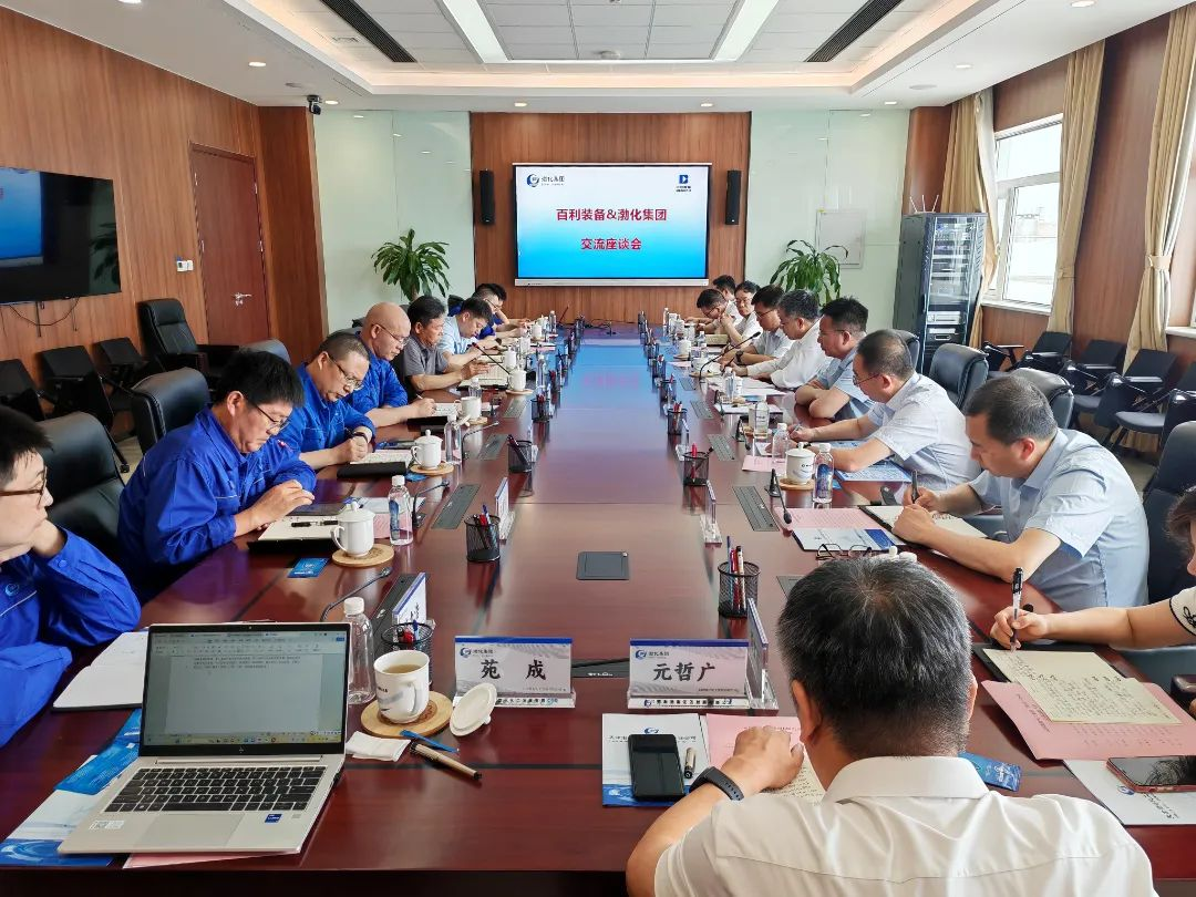 7月8日,天津百利機(jī)械裝備集團(tuán)有限公司(以下簡稱“百利裝備集團(tuán)”)黨委書記、董事長吳杰軍率隊(duì)到渤化集團(tuán)考察交流。集團(tuán)黨委書記、董事長王俊明,副總工程師、研究總院院長武春雷,渤化發(fā)展黨委書記、董事長劉格宏,集團(tuán)人力資源部、采購銷售部、科技創(chuàng)新部負(fù)責(zé)人等陪同接待。