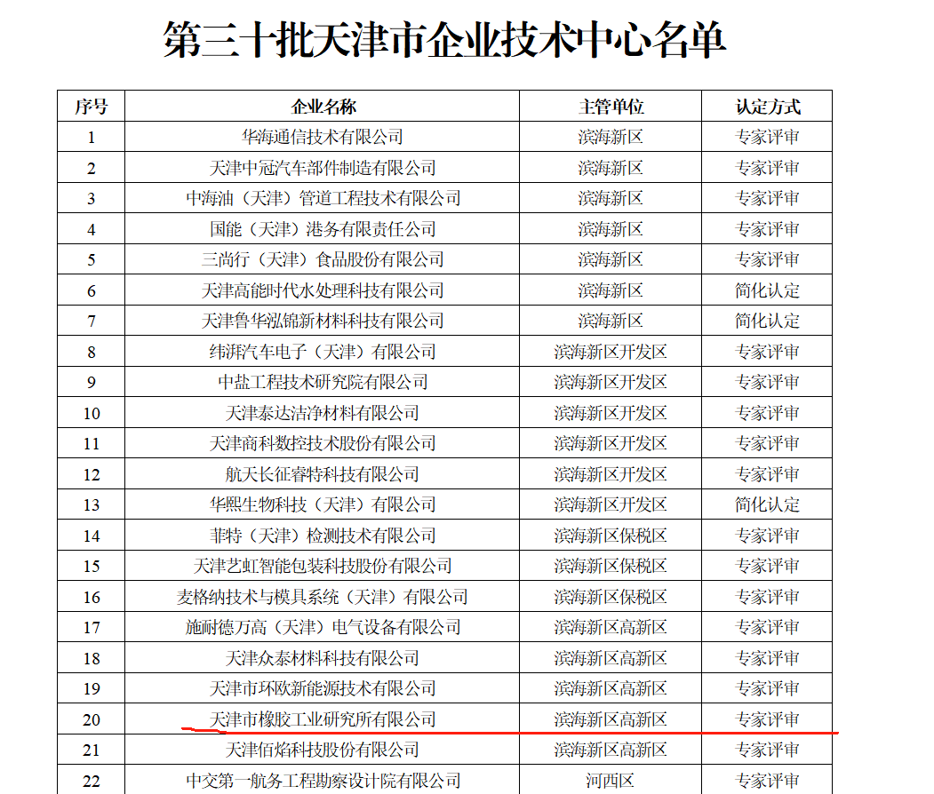 橡研所公司入選天津市企業(yè)技術(shù)中心認(rèn)定名單