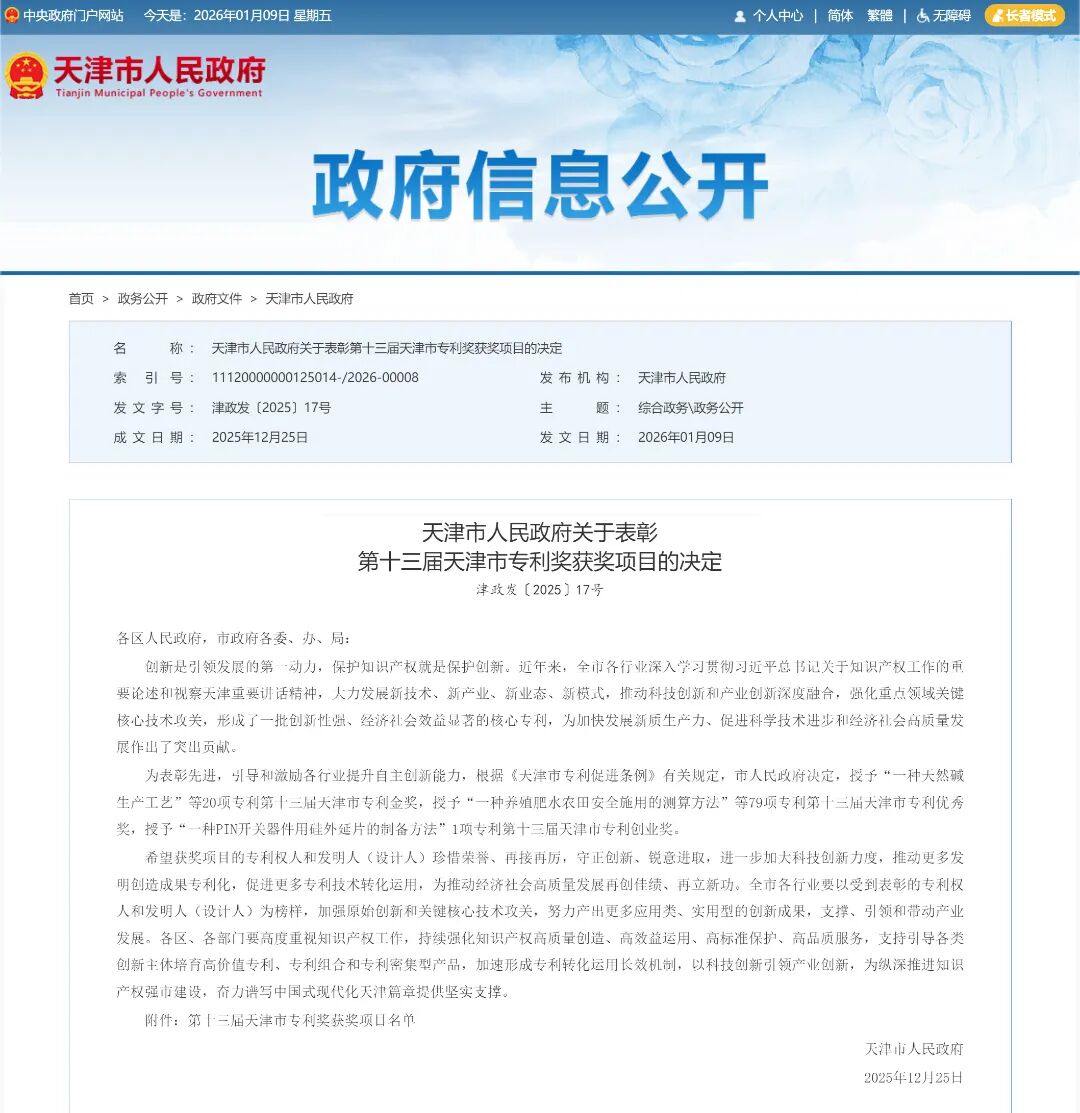天津市專利獎是目前天津市專利領(lǐng)域的最高獎項,由市人民政府授予,旨在表彰在專利創(chuàng)造和運用中取得顯著成效的本市專利權(quán)人和發(fā)明人(設(shè)計人),評選工作每兩年舉辦一屆,分為金獎、優(yōu)秀獎和創(chuàng)業(yè)獎,每屆授獎總數(shù)不超過100項。