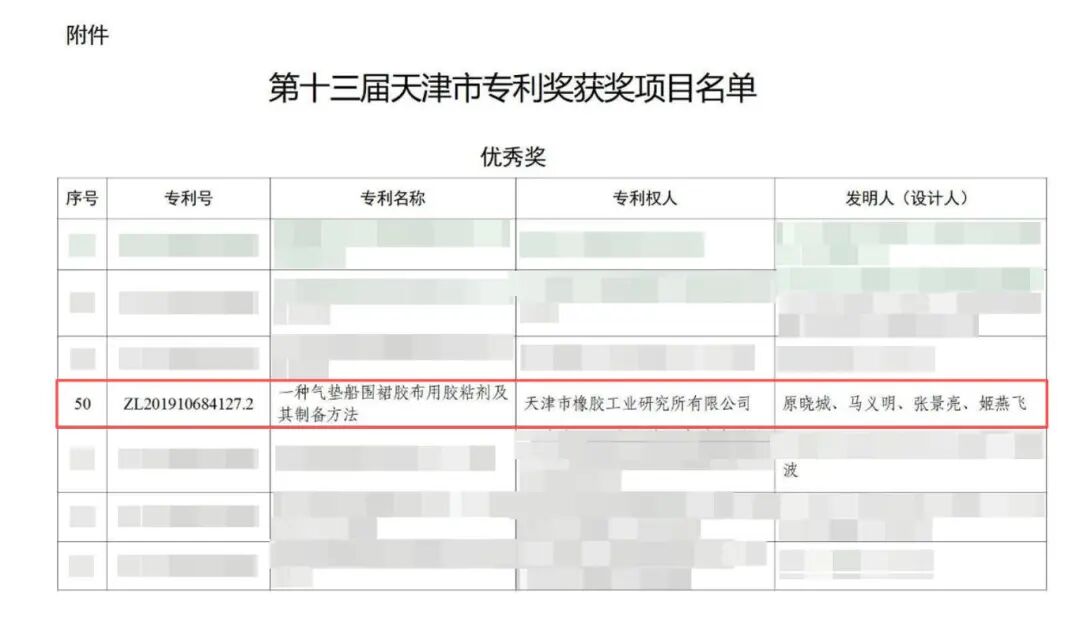 為表彰先進,引導(dǎo)和激勵各行業(yè)提升自主創(chuàng)新能力,1月9日,天津市人民政府發(fā)布《關(guān)于表彰第十三屆天津市專利獎獲獎項目的決定》,本次決定授獎項目共100項,其中金獎20項、優(yōu)秀獎79項、創(chuàng)業(yè)獎1項。渤化集團所屬天津市橡膠工業(yè)研究所有限公司(以下簡稱“橡研所”)申報的專利(ZL?201910684127.2)以突破性的技術(shù)創(chuàng)新,榮獲第十三屆天津市專利優(yōu)秀獎。