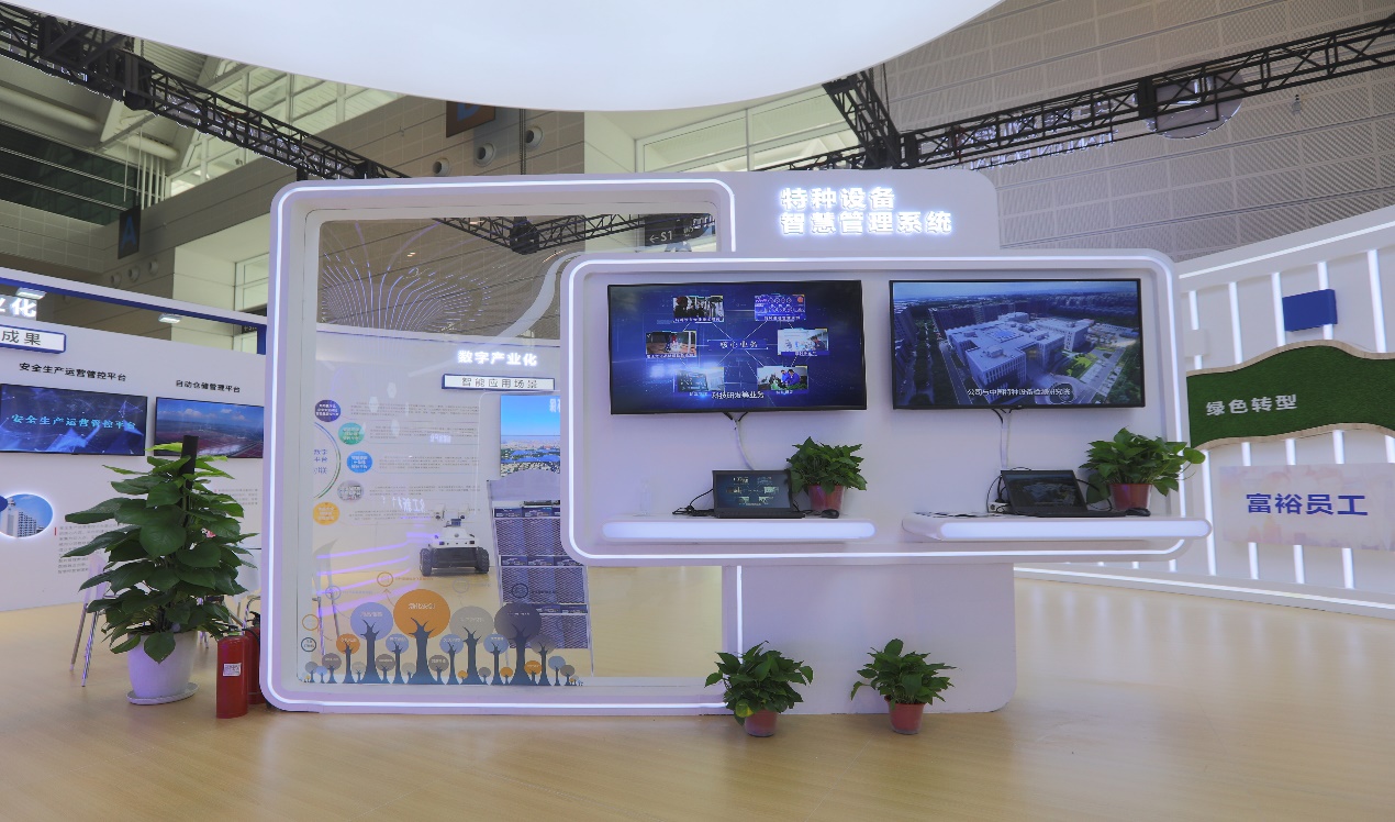 本次會上,渤化集團以“聚力智能科技,勇創(chuàng)未來發(fā)展”為主題搭建展區(qū),展臺中心的智慧科技樹以化工新材料、數(shù)字智能、綠色發(fā)展等戰(zhàn)略方向為根基,延伸覆蓋集團產(chǎn)業(yè)版圖,通過產(chǎn)業(yè)數(shù)字化、數(shù)字產(chǎn)業(yè)化、新材料產(chǎn)業(yè)、綠色環(huán)保產(chǎn)業(yè)、新能源產(chǎn)業(yè)、智慧教育產(chǎn)業(yè)、C端產(chǎn)品、創(chuàng)新創(chuàng)業(yè)八個版塊精準分區(qū),從內(nèi)容端、空間端、體驗端、品牌端、文化端全面展現(xiàn)數(shù)字賦能化工制造業(yè)高端化智能化綠色化發(fā)展的支撐作用和建設(shè)成效,重點突出“三大亮點”。