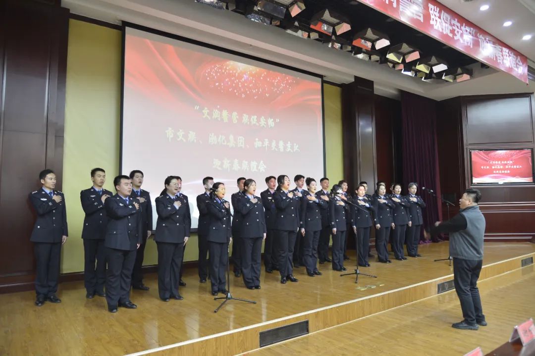文藝骨干們?yōu)榇蠹規(guī)硪粓鼍始姵实奈乃囇莩?,?lián)誼活動為交通干警、渤化集團一線干部職工送去節(jié)日的問候和新春祝福,讓大家在喜慶的氛圍里領略交警風采,感受文化魅力,共同見證警民攜手、文安相融的美好華章。
