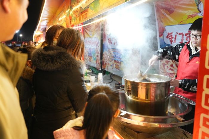 此外,活動(dòng)期間,漢服巡游、動(dòng)感舞蹈、狂歡電音等潮流表演,更是將現(xiàn)場(chǎng)氣氛推向了高潮。傳統(tǒng)文化與現(xiàn)代元素的激情碰撞,不僅極大地豐富了市民的文化生活,還讓大家真切體會(huì)到傳統(tǒng)文化與現(xiàn)代生活的和諧交融。記者在現(xiàn)場(chǎng)看到,市民們?cè)谫p燈的閑暇之余,還可以在海門市集上品嘗到各地的特色美食,開啟一場(chǎng)舌尖上的旅行。